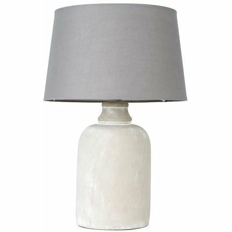 Modern grey cement effect base table lamp complete with a grey fabric tapered light shade. This contemporary table lamp is a great way to brighten up any room in your home. Its simply yet stylish design will add a minimalist touch to your living space.