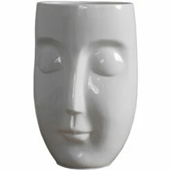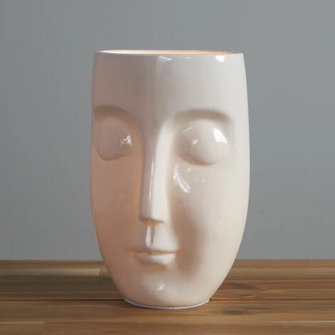 This MiniSun ceramic table lamp features a face shaped base in a white glazed finish. Perfect for adding a modern touch to any room in your home.
