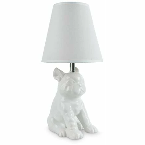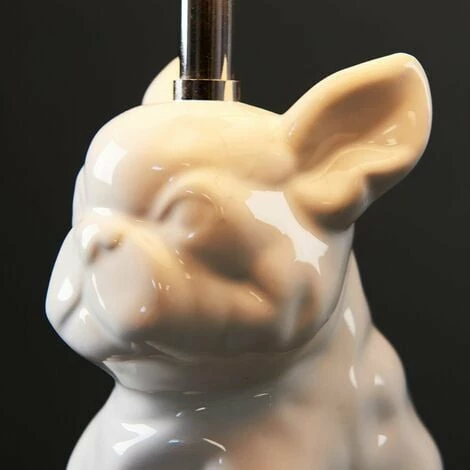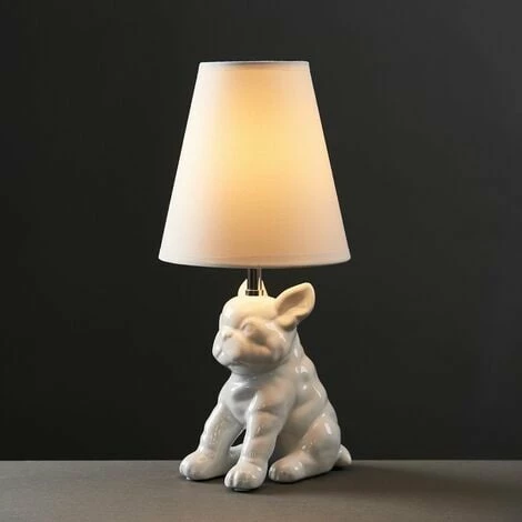 This wonderful and unique pet dog table lamp would make a stunning addition to any doggy lover’s home! Contemporary and artistic in design this cute sitting French bull dog table lamp has a stylish contemporary ceramic puppy design in a gloss white finish with a stunning white polycotton shade. Table lamps are a great way to bring additional lighting to a room or you can use them reduce your main light output and create a more relaxing mood/atmosphere. An instant update you can change your room style in seconds! Ideal for both adult and children bedrooms as well as living rooms hallways and lounges. 1 x 40w SES E14 (small Edison screw) candle bulb is required – not supplied.