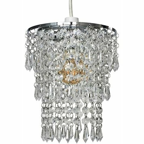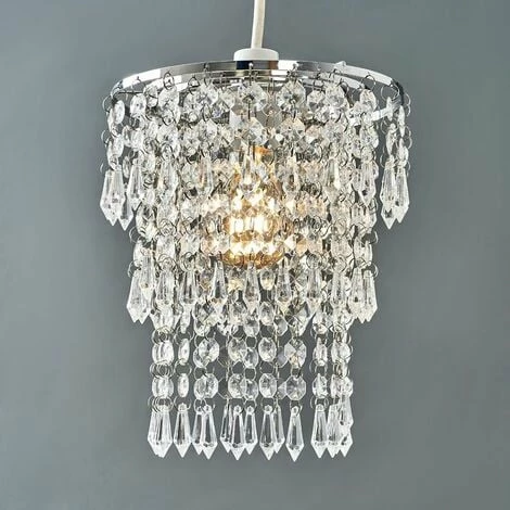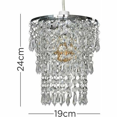 This gorgeous ceiling shade is fantastic for any bedroom. The chrome frame holds the suspended clear acrylic droplets that allow the light to pass through which casts stunning light patterns through the room whilst also creating a warm and inviting glow. The shade easily fits to your existing ceiling fitting in a matter of seconds – no electrical installation required. The ideal bulb to use with this product is a 60w BC GLS bulb – not supplied.
