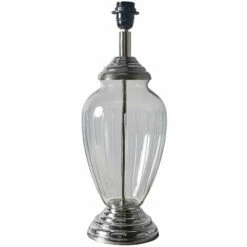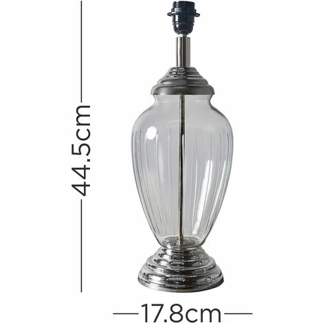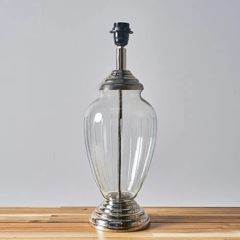 This MiniSun table lamp base comes in a chrome and glass finish. Complete with an in-line on/off rocker switch for easy use. Simply pair with a shade of your choice to complete the look.