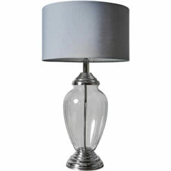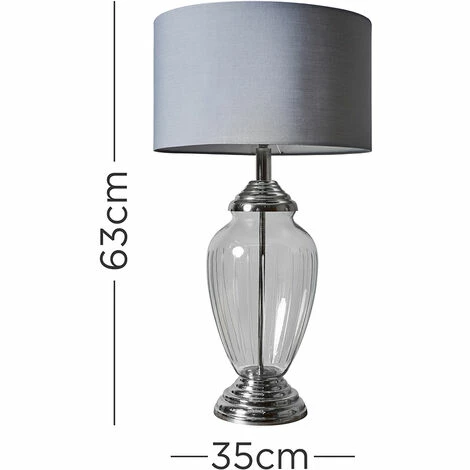 This MiniSun table lamp comes in a chrome and glass finish. Featuring an in-line on/off rocker switch for easy use. Complete with a large drum lampshade in a range of colours to suit all decors.