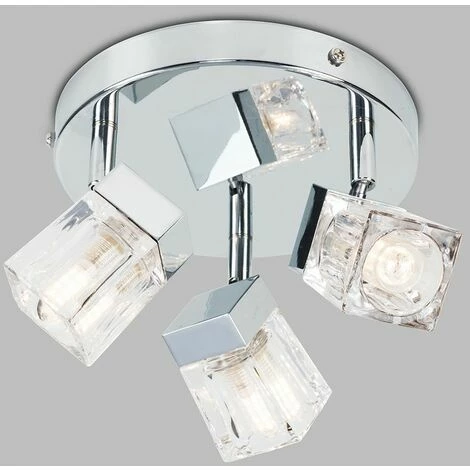 The right fitting can make a real style statement and complete your living space look. Stunning modern 3 way halogen bathroom ceiling light spotlight. Silver chrome finish with glass ice cube shades. The glass shades cast a subtle beautiful light across the room once lit.