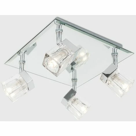 Stunning modern 4 way bathroom ceiling light spotlight. Silver chrome finish with glass ice cube shades. The glass shades cast a subtle beautiful light across the room once lit. 4 x 3w Energy Saving Long Life G9 LED Light Bulbs Supplied