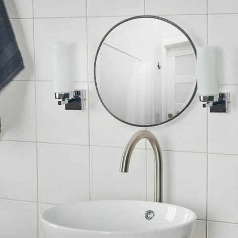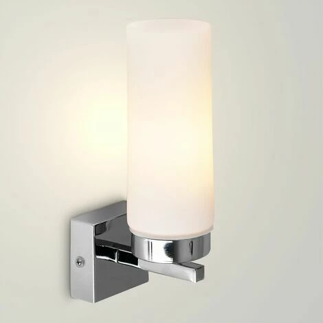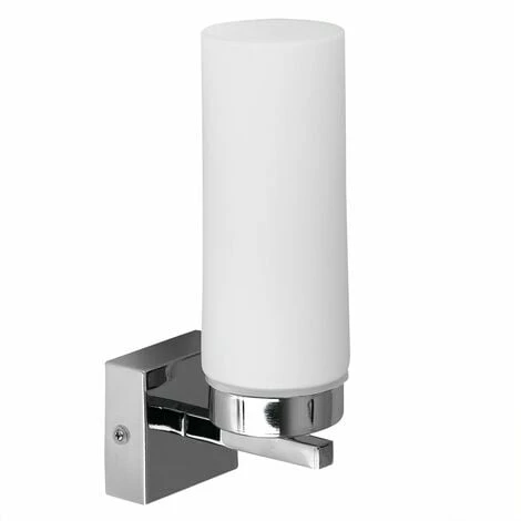 Modern wall light in polished chrome finish with white frosted glass shade. This superb wall light features classic timeless design. Comes complete with fixing pack and full fitting instructions. IP44 rated – suitable for bathrooms zone 1 2 and 3. Wall lights are a great way to bring additional lighting to a room and are particularly useful to illuminate a dull alcove.