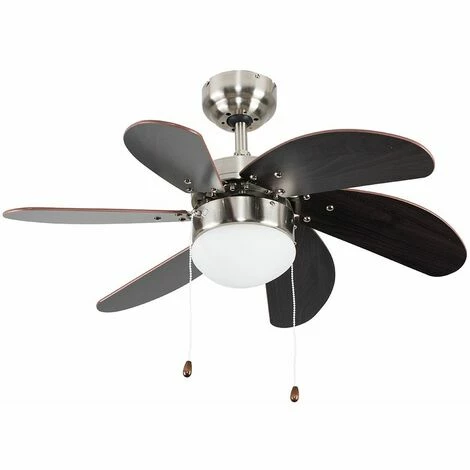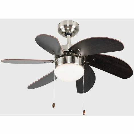 Modern MiniSun branded three speed ceiling fan in a brushed chrome. Features six blades in a wood effect finish. Includes an integrated ceiling light with on / off pull switch. Ideal for most rooms this superb ceiling fan has a directional motor so it can be used in both warm and cold conditions. Comes complete with a full function remote control product guide and installation instructions. Please NOTE the remote control is not suitable for use with LED bulbs.