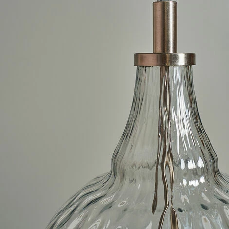 This MiniSun table lamp comes in a clear glass and brushed chrome finish. Faeturing an in-line on/off rocker switch for easy use. Complete with a large fabric tapered lampshade in a range of colour options to suit all decors.