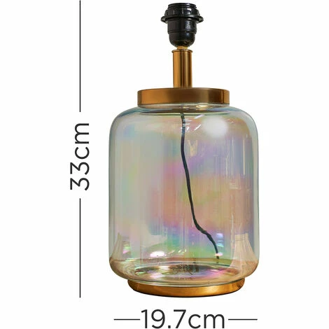 This MiniSun table lamp base comes in a clear glass finish. Complete with an in-line on/off switch for easy use. Simply pair with a shade of your choice to complete the look.