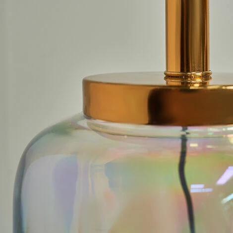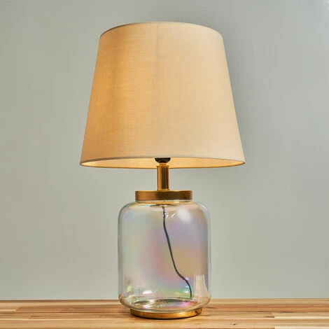 This MiniSun table lamp comes in a clear glass finish. Complete with an in-line on/off switch for easy use. Paired with a fabric tapered lampshade in a range of colour options to suit all decors.