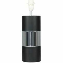 Modern black cylinder table lamp with a beautiful contrasting chrome plated panel design. This unique lamp will look great in any interior space. Its quirky design is a great alternative to a traditional table lamp. Simply touch the metal base to turn the lamp on – no more trying to find the switch at night. The light can be set to 4 stages off a low level light for mood lighting a medium level light for general lighting and a high level light which is the brightest setting to create an intense pool of light. Table lamps are a great way to bring additional lighting to a room or you can use them to reduce your main light output and create a more relaxing mood/atmosphere. Please Note These lamps require dimmable bulbs. Not suitable for standard LED or energy saving bulbs. Lamp base only – pair with a shade of your choice.