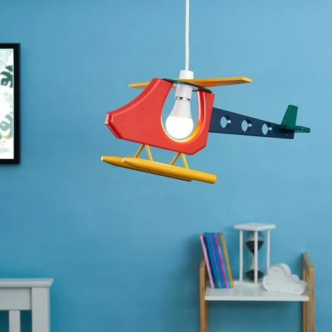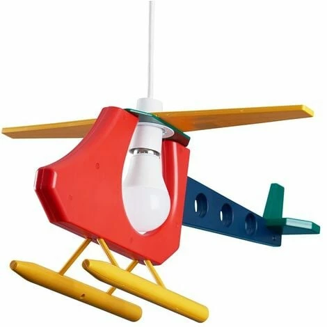A fantastic addition to a young child’s bedroom this cool and exciting ceiling pendant light shade comes in a brilliant colourful 3D helicopter design complete with landing gear and propellers! Finished in bright and vibrant blue yellow green and red this is ideal as a kids gift or for simply updating a young boy’s bedroom with a bit of fun. The bulb is positioned inside the aircraft cockpit with the flex connecting to the copter. 1 x 60w BC B22 GLS bulb is required – not supplied. bPlease Note – This is not a toy. Keep out of reach from children./b