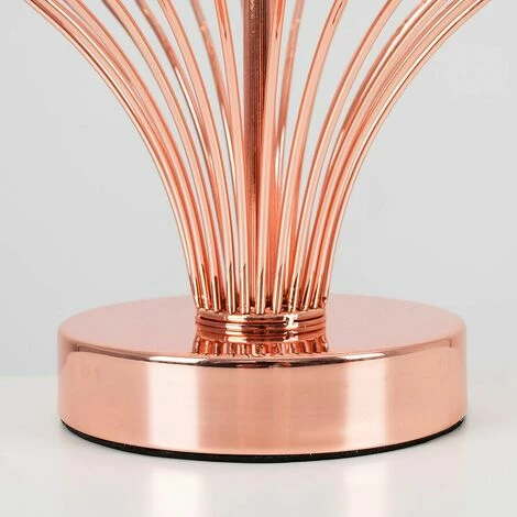 Modern table lamp base in a polished copper effect finish. This contemporary table lamp base features a metal wire geometric diamond design guaranteed to make a statement in any home. Table lamps are a great way to bring additional lighting to a room – perfect for hallways bedrooms lounges living rooms and offices. Simply pair with a shade of your choice to suit your own decor.