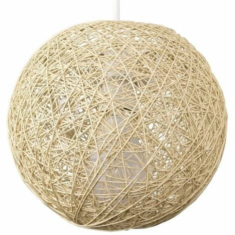 This modern ceiling pendant lampshade features a wonderful round globe design with a wicker / lattice / rattan design that allows the light to filter through beautifully creating a stunning ambient glow. With a stunning cream finish. Perfect for living rooms bedrooms hallways and dining areas. 1 x 40w BC B22 GLS Bulb Is Required – Not Supplied