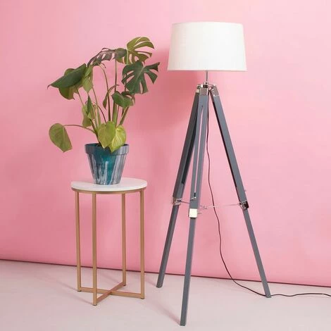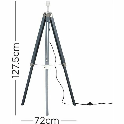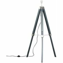Modern tripod style floor lamp base in a grey wood effect and silver chrome finish which features an in-line on/off foot switch for easy use. Floor lamps are a great way to bring additional lighting to a room or you can use them reduce your main light output and create a more relaxing mood/atmosphere. An instant update you can change your room style in seconds. Lamp base only – pair with a shade of your choice.