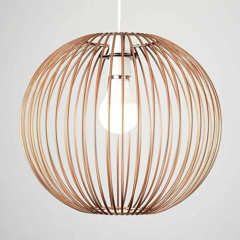 Retro style globe metal ceiling pendant light shade in a copper effect finish. Features an open design which shades the bulb whilst allowing light to disperse effectively and evenly throughout the room. Ideal for lounges dining rooms bedrooms and hallways. Ceiling lights are usually the main source of illuminating a room but with the many styles on offer today also become a main focal point or talking point. The right fitting can make a real style statement and complete your living space look.