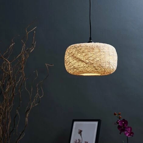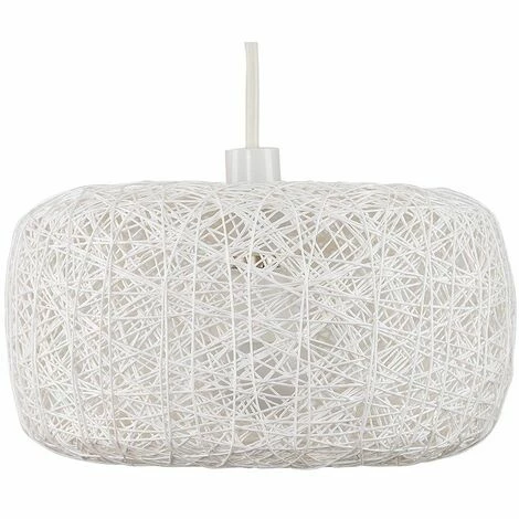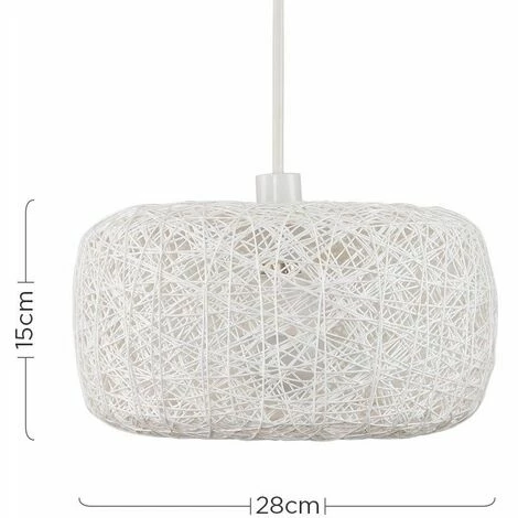 Modern ceiling pendant lampshade in a white wicker / lattice / rattan finish. Features a round design that allows the light to filter through beautifully creating an ambient glow. Perfect for living rooms bedrooms hallways and dining areas. Easily fits to your existing lampholder so an Election is not required.