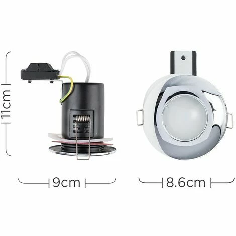 Quality MiniSun fire rated GU10 bathroom / shower in a chrome finish. IP65 Rated Suitable for use in bathroom zones 1 2 and 3. Features 90 minute fire rating and comes complete with terminal block and pre-fitted spring clips. Supplied with product guidelines and full fitting instructions. Super Bright GU10 Energy Saving LED Warm White Bulb Supplied