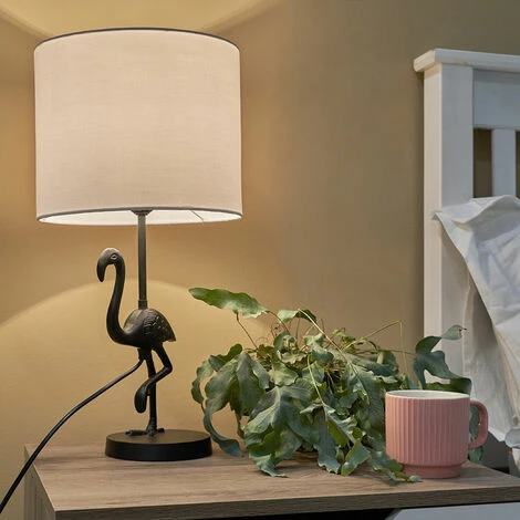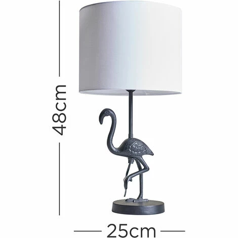 This MiniSun table lamp comes in a matt black metal finish. Featuring a flamingo design base complete with a fabric lampshade. Thanks to its elegant design this lamp fits in with almost any interior design scheme making it perfect for lounges bedrooms hallways and other living areas.