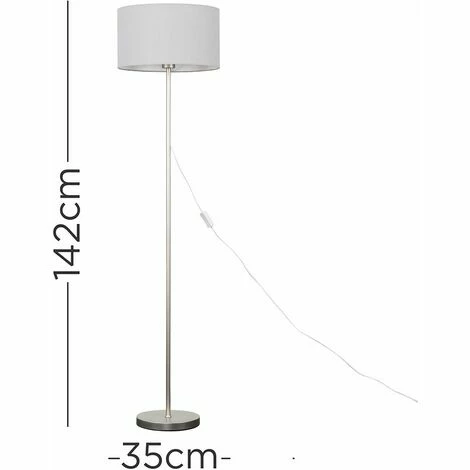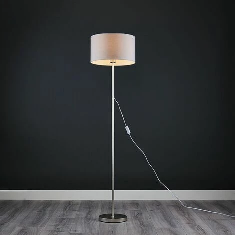 This MiniSun floor lamp comes in a Brushed Chrome finish and features a tall stem with a in-line on/off switch. Paired with our large drum shades available in a range of colour options to suit all decors.
