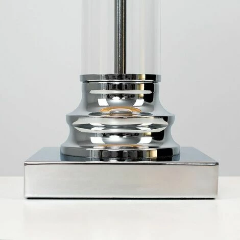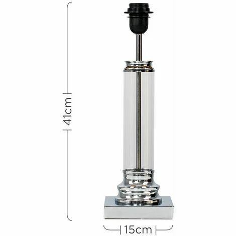 Modern column stem touch table lamp base in a clear glass finish. The light can be set to 4 stages off a low level light for mood lighting a medium level light for general lighting and a high level light which is the brightest setting to create an intense pool of light. This contemporary light is a great way to update any living area to create a relaxing ambient atmosphere. Ideal for lounges bedrooms hallways and other living areas. Lamp base only – pair with a shade of your choice to suit your decor. Please Note This lamp requires dimmable bulbs. Not suitable for standard LED or energy saving bulbs.