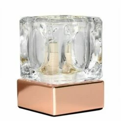 Fantastic modern chrome & glass ice cube touch lamp. Simply touch the metal base to turn the lamp on – no more trying to find the switch at night. The light can be set to 4 stages off a low level light for mood lighting a medium level light for general lighting and a high level light which is the brightest setting to create an intense pool of light. Please Note This lamp requires dimmable bulbs. Not suitable for standard LED or energy saving bulbs.