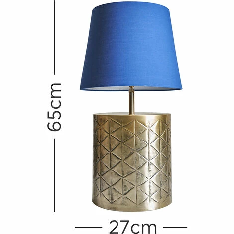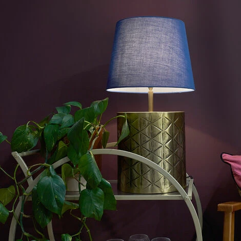This MiniSun table lamp features a patterned base in a gold metal finish. The textured design base is perfect for adding a modern style to any room in your home. Complete with a large tapered lampshade and an in-line on/off rocker switch for easy use. Ideal for living rooms dining rooms bedrooms and other living areas.