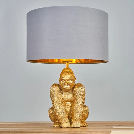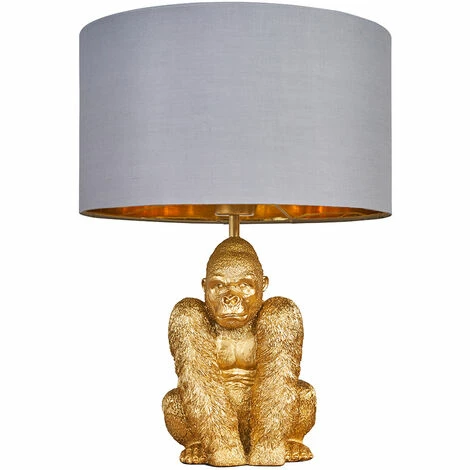 This MiniSun modern table lamp comes in a gold polyresin finish. Featuring a detailed gorilla design this unique lamp is perfect for adding a retro style in any room in your home. It illuminates the entire room perfectly and comes complete with an in-line on/off switch for easy use. Complete with a fabric shade in a range of colour options to suit all decors.