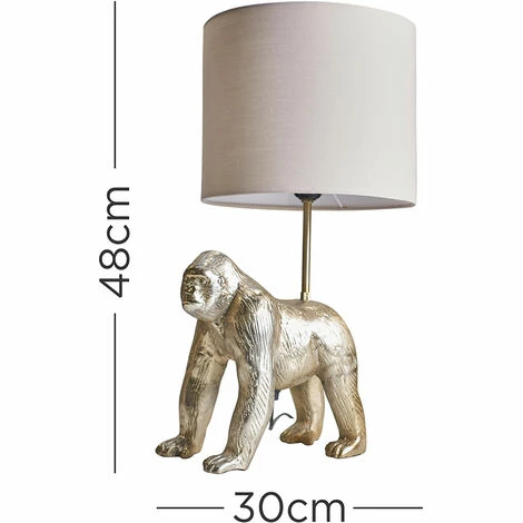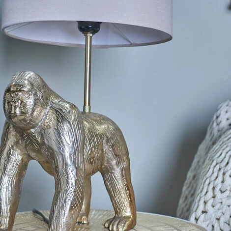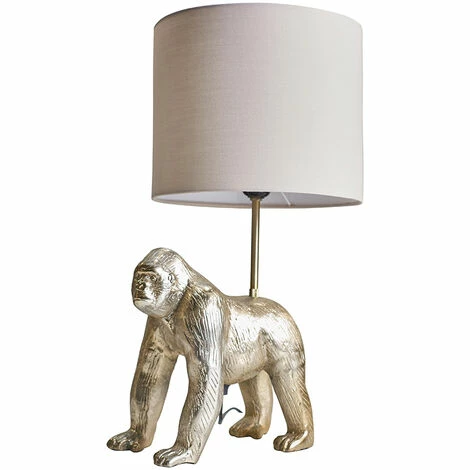 This MiniSun table lamp comes in a brass metal finish. The detailed gorilla base is perfect for adding a modern style to any room in your home.Complete with a fabric drum shade and an in-line on/off switch for easy use.