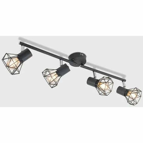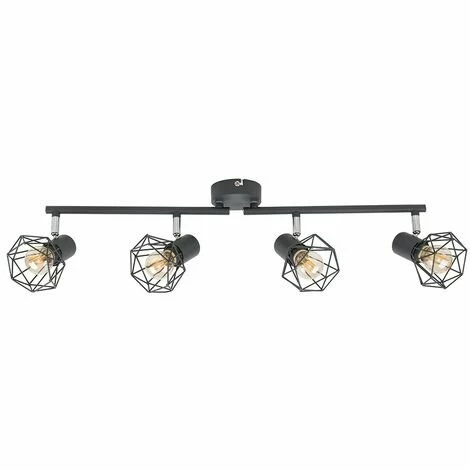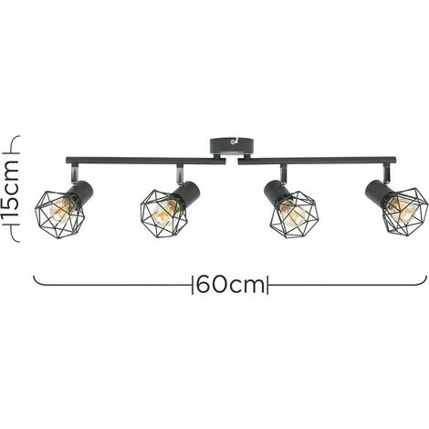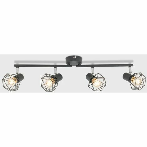 Retro 4 way adjustable spotlight bar in a light grey finish featuring an open design metal basket cage light shades which allows the light to disperse effectively and evenly throughout the room. Ideal for kitchens and other contemporary living areas. The ceiling fitting features 4 spotlight heads which illuminates even the dullest of rooms. Easy to install comes complete with installation instructions and fixing kit.