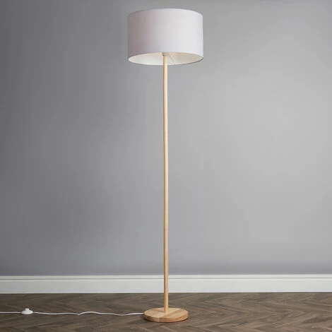This MiniSun stem floor lamp comes in a light wood finish. Complete with a fabric drum lampshade in a range of colour options to suit all decors. Ideal for living rooms dining rooms bedrooms and other living areas.