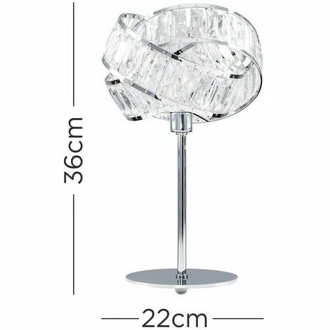This contemporary style table lamp comes in a polished chrome finish and features a beautiful intertwined shade with acrylic jewels. Ideal as bedside table lamps or in the lounge.