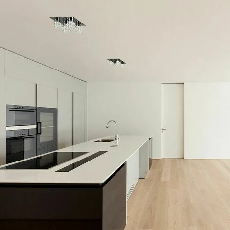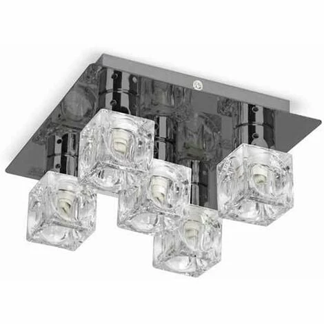 Stunning modern flush 5 way halogen ceiling light. Black chrome finish with glass ice cube shades. The glass shades cast a subtle beautiful light across the room once lit. The ideal bulbs to use with this product are 5 x 3w Energy Saving Long Life G9 LED Light Bulbs Supplied