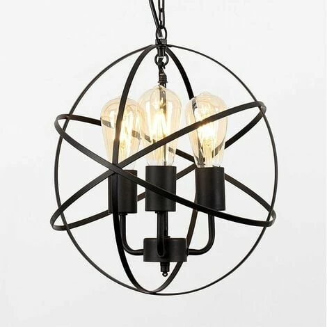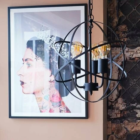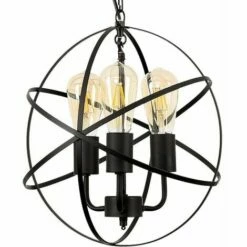 Vintage and industrial style 3 way atom design ceiling light fitting in a satin black metal finish. This unique light will make a real style statement and complete your living space look. Ideal for dining rooms kitchens and other living areas.