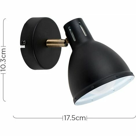 Vintage and industrial style wall spotlight in a satin black and antique brass metal finish. Features an adjustable spotlight head which enables you to direct the light where it is required. Wall lights are a great way to bring additional lighting to a room and are particularly useful to illuminate a dull corner. Ideal for dining rooms kitchens and other living areas.