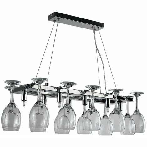 This gorgeous 8 way ceiling light will bring a touch of additional elegance to any home! Utterly stunning in design this 8 way downlight is decorated in a simple yet wonderful two-part drop down polished chrome design with sturdy suspension metal cables – ideal for hanging above dining tables kitchen islands and bars! What’s more this light fitting has 12 fantastic wine glass holders/hooks – perfect for storing drink chalices parties and when friends are round.b Please Note – Wine Glasses are NOT included)./b