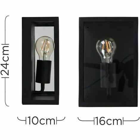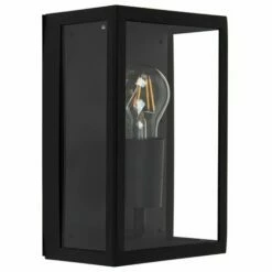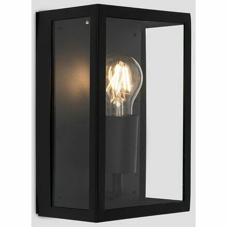 This IP44 rated rectangular outdoor wall light lantern would make a statement on any external wall. Made from durable weather resistant black metal making it the perfect light for outdoor installation. An ideal product to help create a warm and inviting glow to doorways porches and external walls.