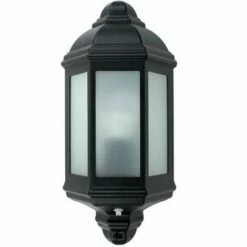 Modern IP44 rated outdoor garden aluminium wall lanterns with frosted glass lens panels. These outdoor light fittings feature either a integrated dusk till dawn sensor which means the light will automatically switch itself on when it goes dark and off again when it goes light. It features a PIR sensor which allows the light to illuminate when a person walks past or no sensor. Perfect for lighting gardens patios walkways and as an entrance light. Please Note – The cable comes in from the back and sits in the centre at the bottom of the Item.