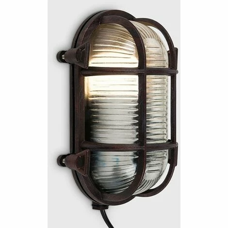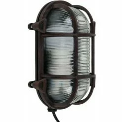 These nautical style outdoor wall lights are perfect for anyone looking to inject a sense of the seven seas into their garden. With an IP64 rating you don’t need to worry about weather or rain damage. Ideal for outdoor walls garages porches and patios. These sturdy fittings are available in a sleek rust effect metal finish casing. Paired with one of our vintage style bulbs you can create a beautiful lantern.