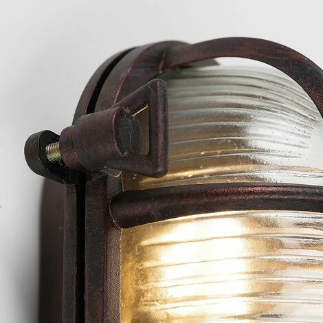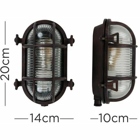 These nautical style outdoor wall lights are perfect for anyone looking to inject a sense of the seven seas into their garden. With an IP64 rating you don’t need to worry about weather or rain damage. Ideal for outdoor walls garages porches and patios. These sturdy fittings are available in a sleek rust effect metal finish casing.