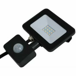 MiniSun branded slimline integrated 4000k neutral white LED security floodlight in a black metal finish. Complete with a PIR motion sensor. The motion sensor allows this light to automatically switch itself on when presence is detected and switch itself back off again making it a perfect energy saving option. The fixture comes with an IP65 weatherproof rating – Ideal for outdoor garden porch pathway and/or garage lighting. Lumen Output 830 Lumens. Voltage Range 175265V. Wattage 10 Watts. Lifespan Approx. 20000 Hours
