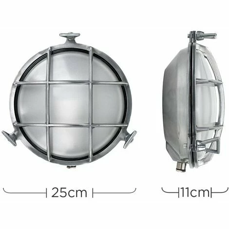 These nautical style outdoor wall lights are perfect for anyone looking to inject a sense of the seven seas into their garden. With an IP66 rating you don’t need to worry about weather or rain damage. Ideal for outdoor walls garages porches and patios. These sturdy fittings are available in a sleek polished aluminium metal finish. Paired with one of our vintage style bulbs you can create a beautiful lantern.