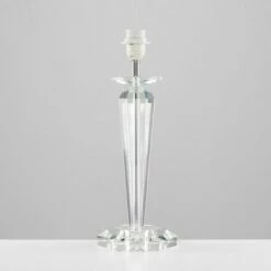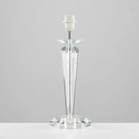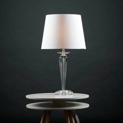 Modern clear genuine K9 crystal table lamp base. Simply pair with a shade of your choice to suit your own decor within the home. Features an in-line on/off switch for easy use. Table lamps are a great way to bring additional lighting to a room or you can use them reduce your main light output and create a more relaxing mood/atmosphere.