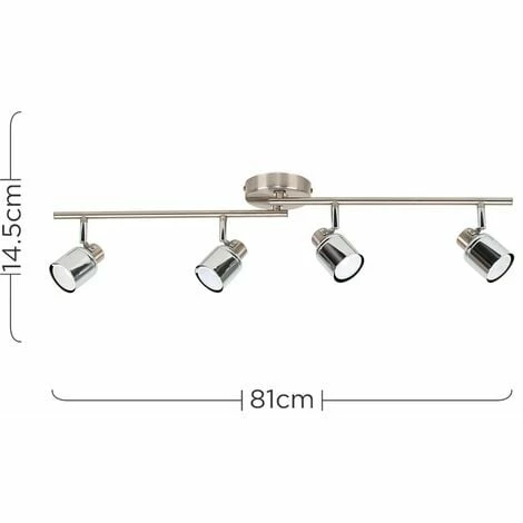 Spotlights are a great way to bring additional illumination into a room. The adjustable heads enable you to direct the light source to exactly where you want it. Modern 4 way spotlight in a stylish combination of polished chrome and brushed chrome Finish. Ideal for kitchens and other contemporary living areas. This item requires 4 x 50w GU10 halogen bulbs.