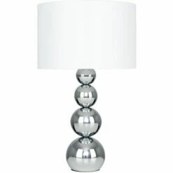 Modern Bedside Table Lamp in a Polished Chrome Finish With Faux Silk Shade. Ideal for Lounges Dining Rooms Bedrooms and Other Living Areas