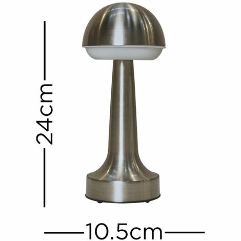 Add instant lighting to your home with this MiniSun cordless / wireless touch table lamp. This contemporary lamp is powered by a rechargeable battery so there is no need to plug it in. The light can be set to 4 stages off a low level light for mood lighting a medium level light for general lighting and a high level light which is the brightest setting to create an intense pool of light. Ideal as a bedside lamp garden lamp or for any location where a plug socket is not available. Comes supplied with a 1.2m USB cable with charging indicator. Please Note – This product is IP20 rated which means it can not be used in wet conditions. Please move inside if raining.