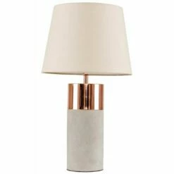 This modern industrial lamp from MiniSun comes in a cement and copper finish combining a matt base with a glossy metal top for the perfect contrast. The cylinder design of the lamp is perfect for adding a modern style to your home. It has been paired with our cotton tapered shades in a range of colour options. Why not add our MiniSun LED bulb to your purchase This energy saving bulb gives equivalent light output to a 40W halogen bulb whilst using a fraction of the energy.