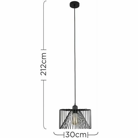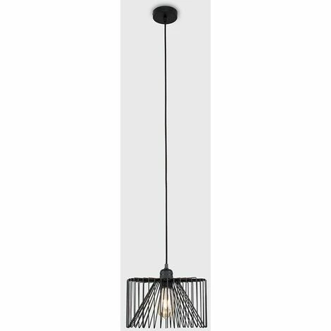 Modern ceiling rose & lamp holder set in a matt black metal finish which features a high quality braided flex. Complete with a black cylinder shaped wire design light shade. Ideal for lounges dining rooms kitchens and other areas within the home. Please note the flex can be shortened if required.