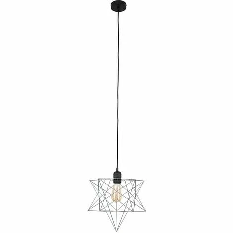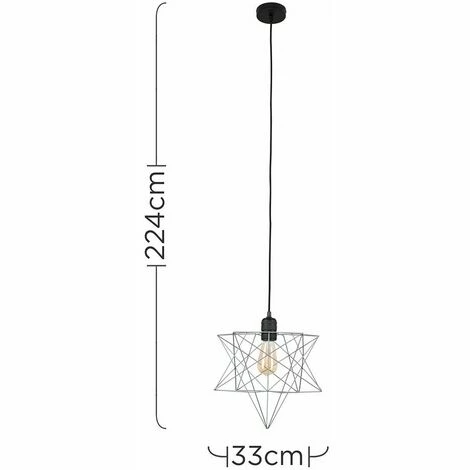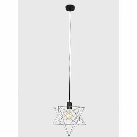 Modern ceiling rose & lamp holder set in a matt black metal finish which features a high quality braided flex. Comes complete with a matt grey geometric wire star design shade. The shade has an open design which shades the bulb whilst allowing light to disperse effectively and evenly throughout the room. Please note the flex can be shortened if required.