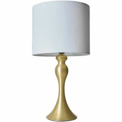 This MiniSun table lamp features a traditonal spindle design base and comes in a matt gold finish. Complete with a fabric drum lampshade and an in-line on/off rocker switch for easy use. This lamp is perfect for complementing any contemporary home. Ideal for use in lounges hallways bedrooms and other living areas.