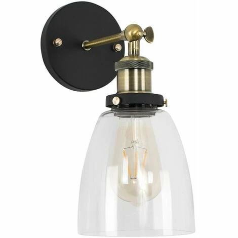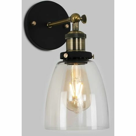 Retro style wall light fitting in an antique brass and black metal finish complete with a clear glass shade. This wall light features a knuckle joint that allows you to adjustable the angle of the lamp into your desired position. Ideal for pairing with one of our vintage LED filament bulbs. Wall lights are a great way to bring additional lighting to a room and are particularly useful to illuminate a dull alcove.